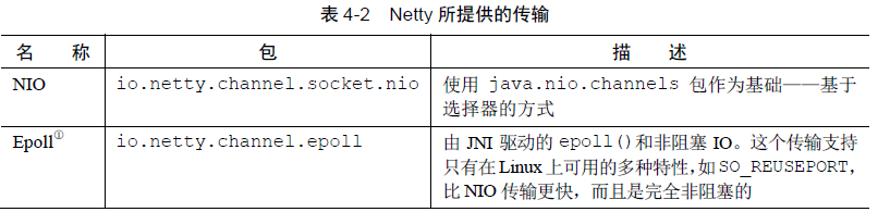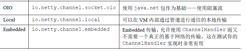 Netty 内置了一些可开箱即用的传输。