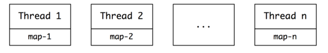 class ThreadMapKey {} class Thread { private Map<ThreadMapKey, Object> threadMap; public Map<ThreadMapKey, Object> getThreadMap() { return threadMap; } } 全局建立几个对象: static ThreadMapKey context = newThreadMapKey(); static ThreadMapKey logFd = newThreadMapKey(); static ThreadMapKey mysqlConnection = newThreadMapKey(); 线程初始化的时候调用: Thread thread = Thread.getCurrentThread(); Map<ThreadMapKey, Object> map = thread.getThreadMap(); map.put(context, new Context()); map.put(logFd, (new Log()).getFd()); map.put(mysqlConnection, ConnectionPool.getConnection());