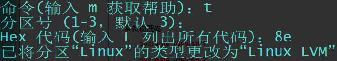 t 改变分区类型为8e
