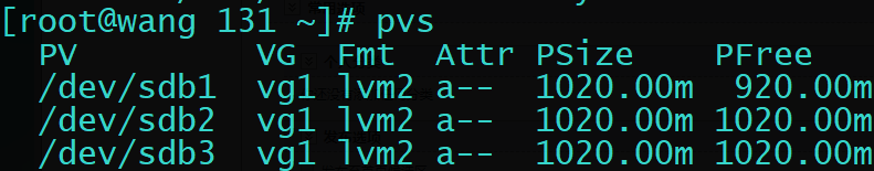 pvdisplay/pvs 列出当前的物理卷