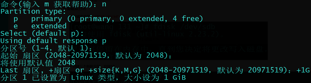 n 创建三个新的分区,分别1G