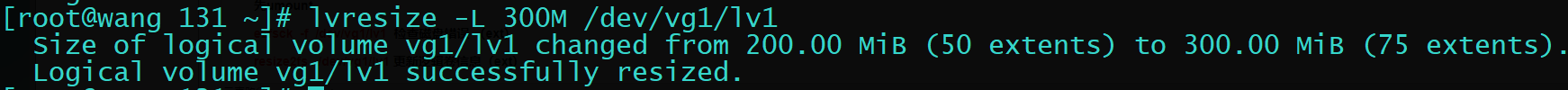lvresize -L 300M /dev/vg1/lv1 重新设置卷大小