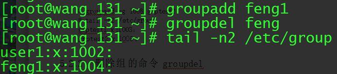 (2)删除组的命令groupdel //groupdel 组名