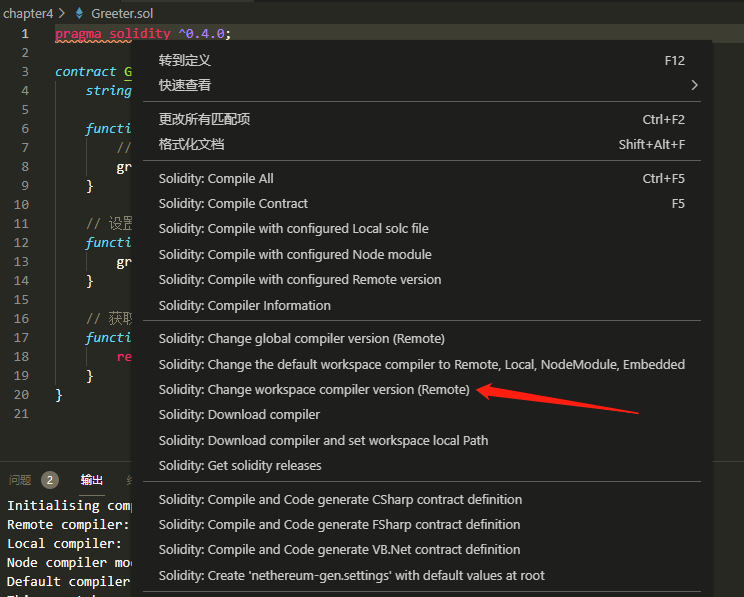 vs code 怎么修改 solidity 版本