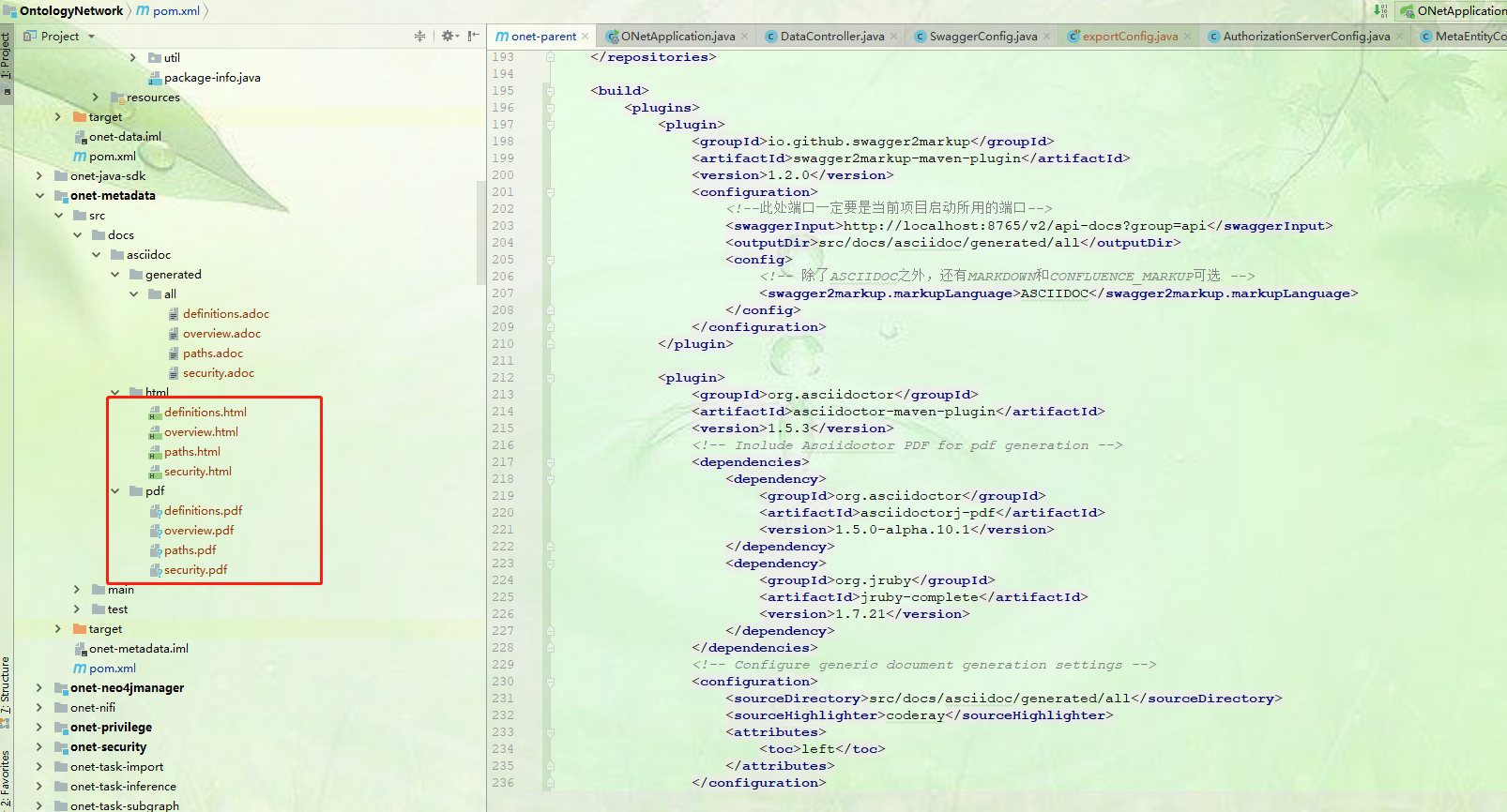 注意:在生成adoc文件时,要启动项目。项目中要配置swagger。
