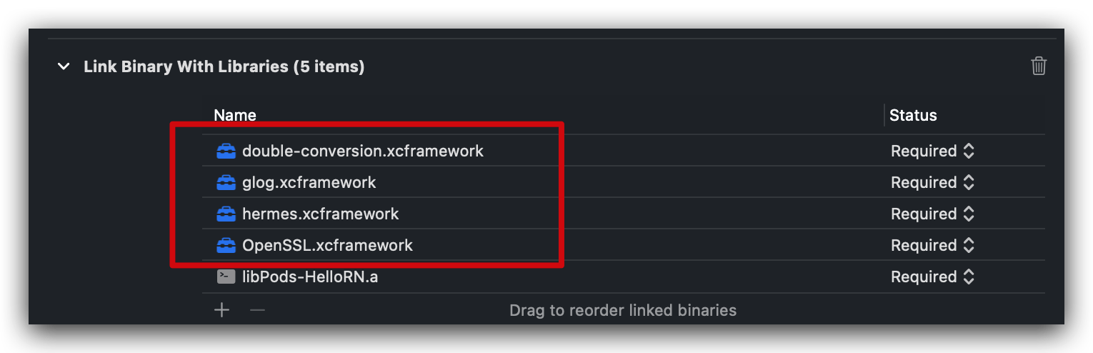 Library not loaded: @rpath/hermes.framework/hermes xxxx Debug-iphonesimulator/hermes.framework/hermes’相关的报错,则需要把.xcframework文件导进去先,然后再运行就可以了