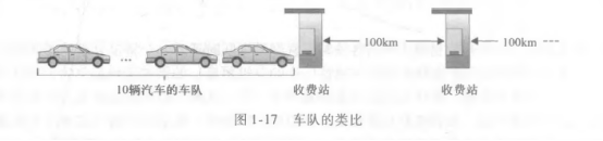 这里要重点区分传输时延和传播时延。传输时延是指一辆车经过高速收费站需要拿卡支付高速费用的处理时间。而传播时延是指从高速站A到高速站B需要的时间。