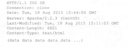 首部行Content-Type: 指示了实体体中的对象是HTML文本