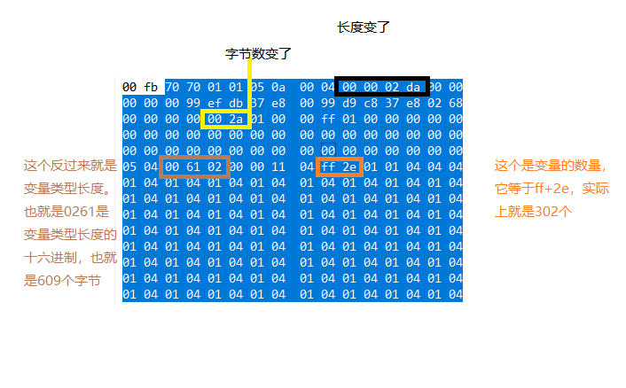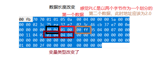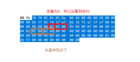 然后开始指示变量的类型,01代表bool型,02代表是byte型,04代表是word型。其他的类型的还需要进行尝试。然后以04结尾,如果有多个变量,那么就在04后紧跟着表示。