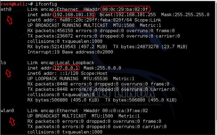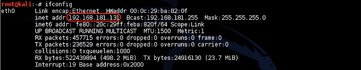 kali > ifconfig eth0 192.168.181.115 网络掩码 255.255.0.0 广播 192.168.1.255