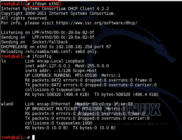 kali > ifdown eth0