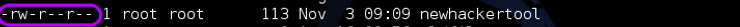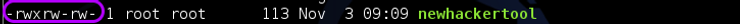 我们可以在上面的截图中看到,我们的newhackertool没有任何人的执行权限。当我们在我们的 newhackertool 上做一个长列表时,我们可以看到所有者的权限是 onlt 读写 (6)。