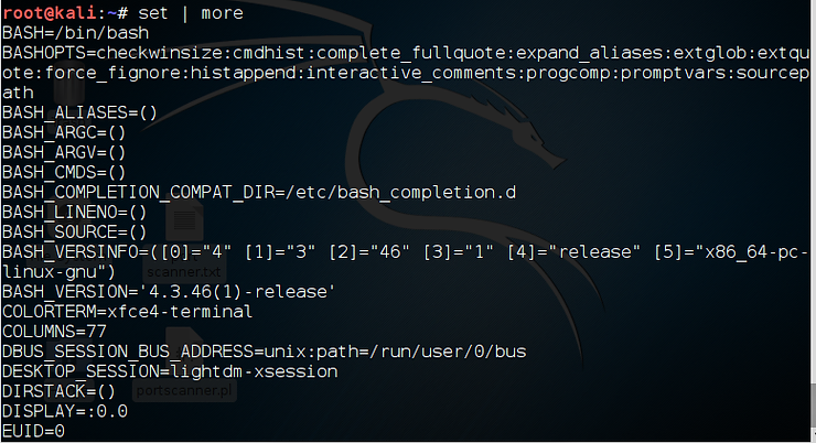 此外,我们可以通过输入命令集来查看所有变量和任何用户定义的变量或命令别名。