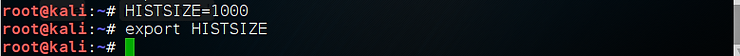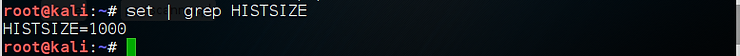 现在,当我们离开此环境并稍后返回时,HISTSIZE 变量设置为 0。当然,我们可以通过简单地输入将 HISTSIZE 变量设置回 1000;