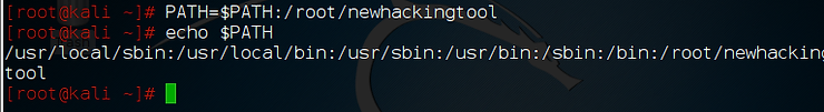 如果我们要下载并安装一个名为“newhackingtool”的新黑客工具到/root/newhackingtool 目录中,我们只能在该目录中使用它。这意味着每次我们想要使用该工具时,您都必须首先导航到 /root/newhackingtool。这可能很好,但有点不方便。为了能够从任何目录使用这个新工具,您只需将此目录添加到 PATH 变量中即可。