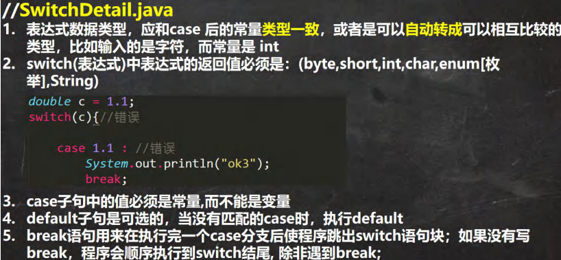 switch 注意事项和细节讨论: