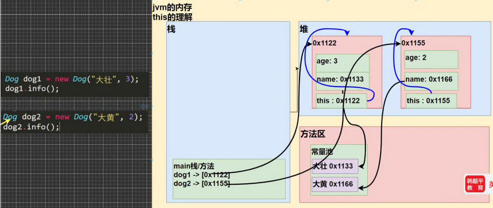 java虚拟机会给每一个对象分配this,代表当前对象。