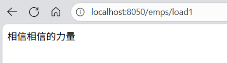 访问 http://localhost:8050/emps/load1,Freemarker 模板会渲染出“相信相信的力量”的文本内容。