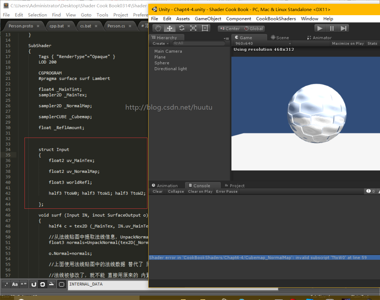 Shader error in 'CookBookShaders/Chapt4-4/Cubemap_NormalMap': invalid subscript 'TtoW0' at line 59