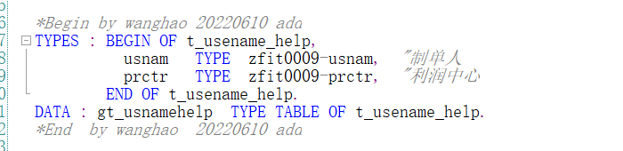 DYNPROFIELD = 'S_USNAME-LOW' "选择屏幕上需要加F4帮助的字段