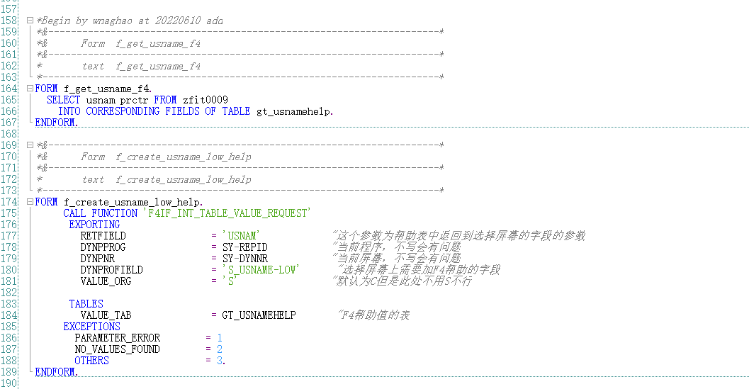 在写调用,可以把调用方法 F4IF_INT_TABLE_VALUE_REQUEST包在一个PERFORM里,这样看起来好看
