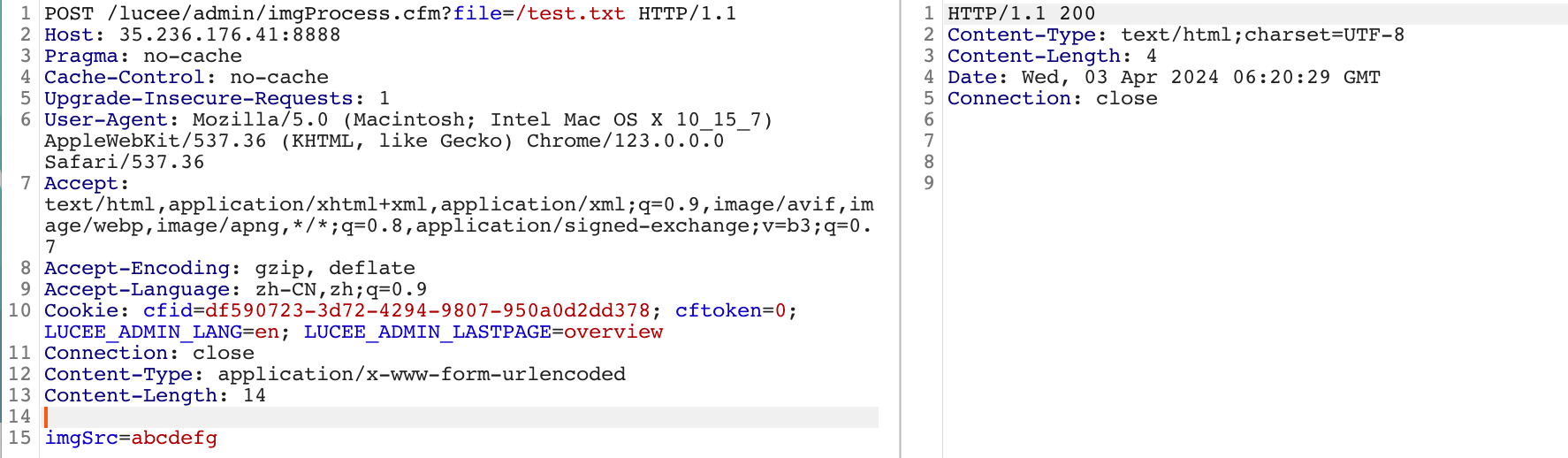 由于另外两个站点部署的是lucee较旧的版本,在lucee较旧的版本中 imgProcess.cfm 不可用,所以需要再另找漏洞:找一个也能写入文件的 cfm 文件。