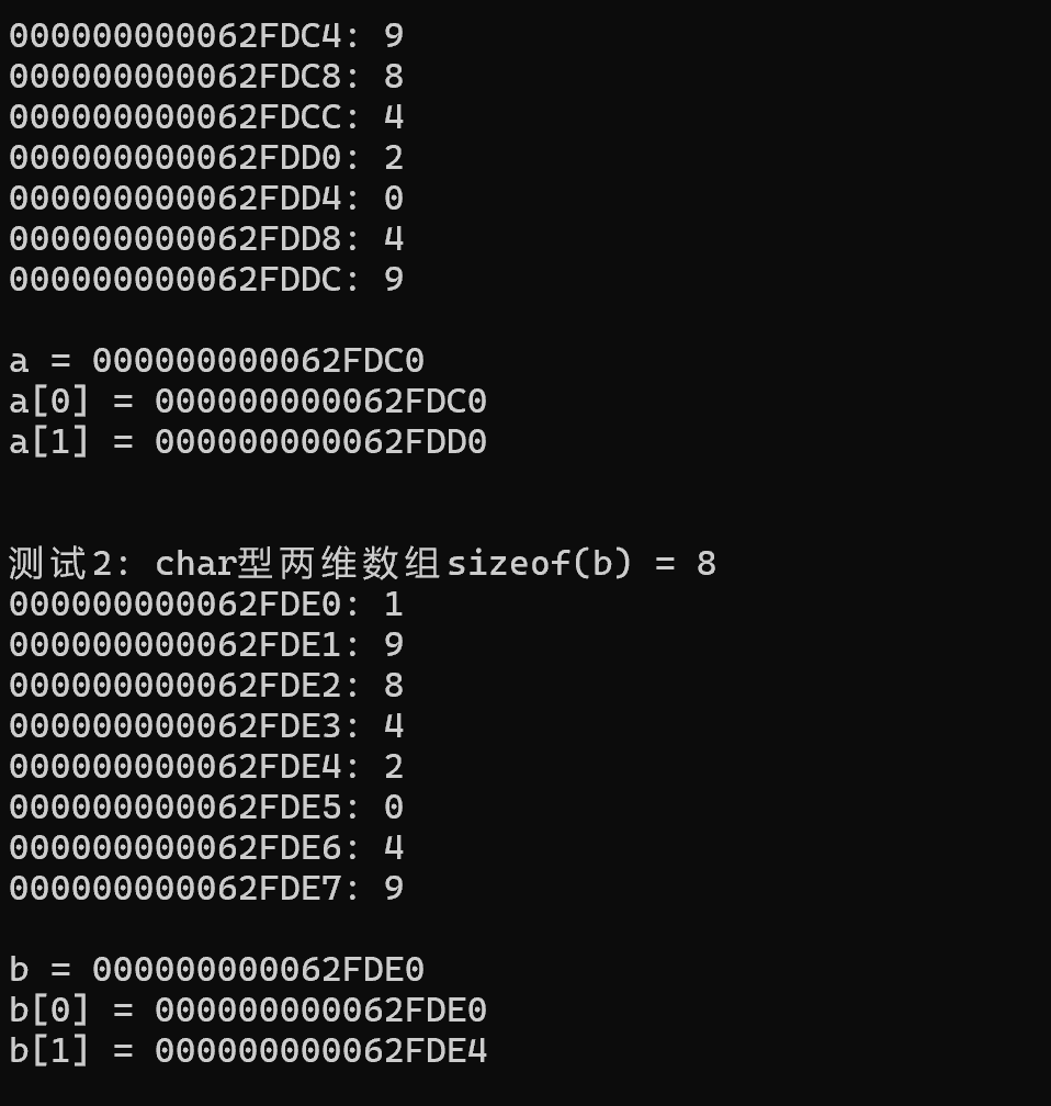 // 输出int类型二维数组名a, 以及,a[0], a[1]的值