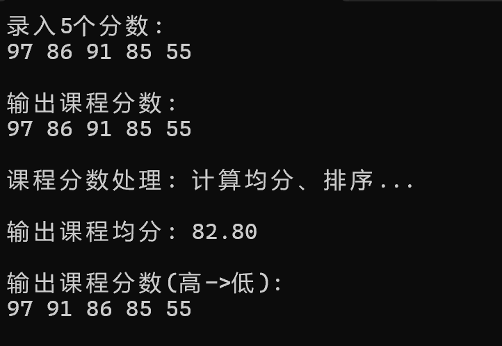printf("\n课程分数处理: 计算均分、排序...\n");