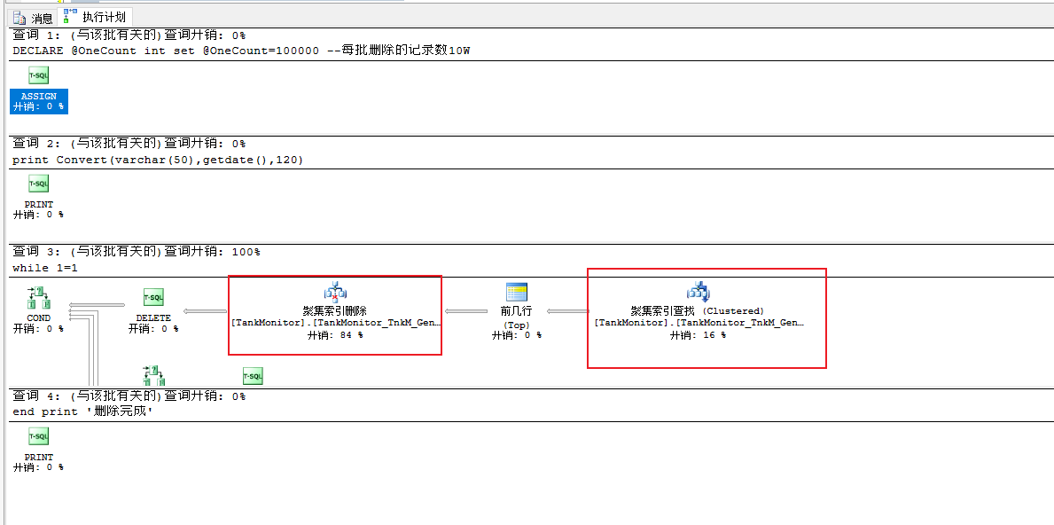 --说明 :@OneCount 每次删除的数据量,此处设置10w,可根据实际情况调整。