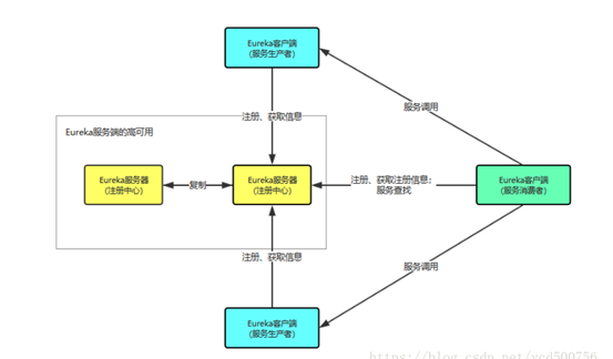 - 在实际使用时Eureka Server至少部署两台服务器,实现高可用。