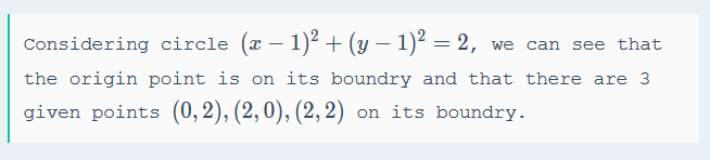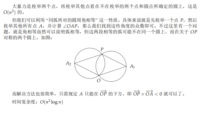 还看到一个用三点共圆公式的,同样是法1的枚举,只不过是改成枚举计算圆心,然后找这些圆心的众数。