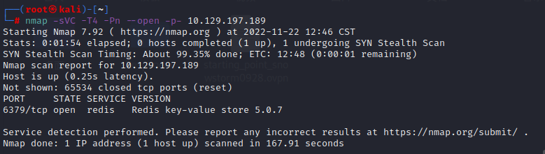 nmap -sVC -T4 -Pn --open -p- 10.129.197.189