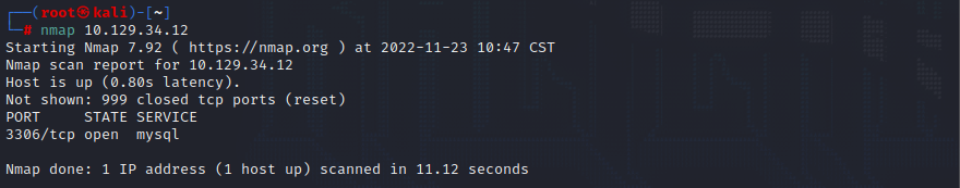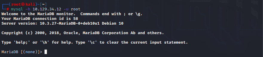 mysql -h 10.129.34.12 -u root