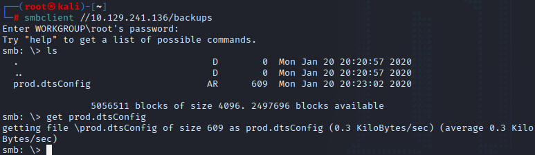 使用smbclient查看一下,并获取目录下文件,查看配置里的密码