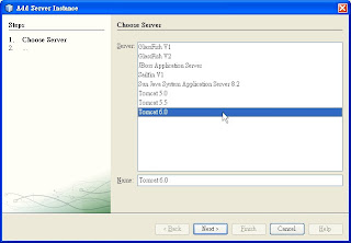 如下圖,選 Tomcat6.0,按 Next 按鈕