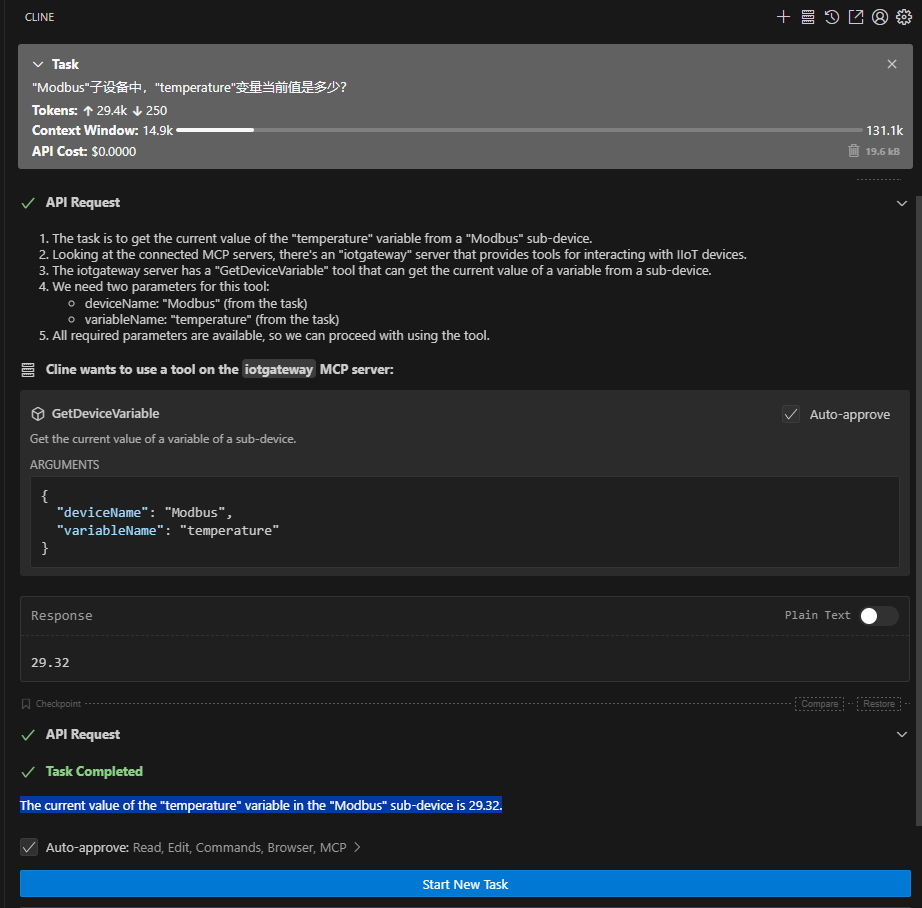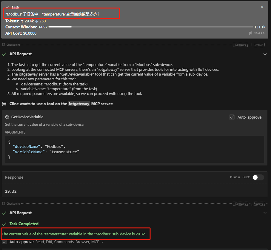 目标是使用自然语言提问,自动调用IoTGateway的MCPServer回答相关问题