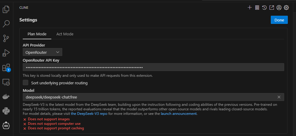 Model使用 deepseek/deepseek-chat:free