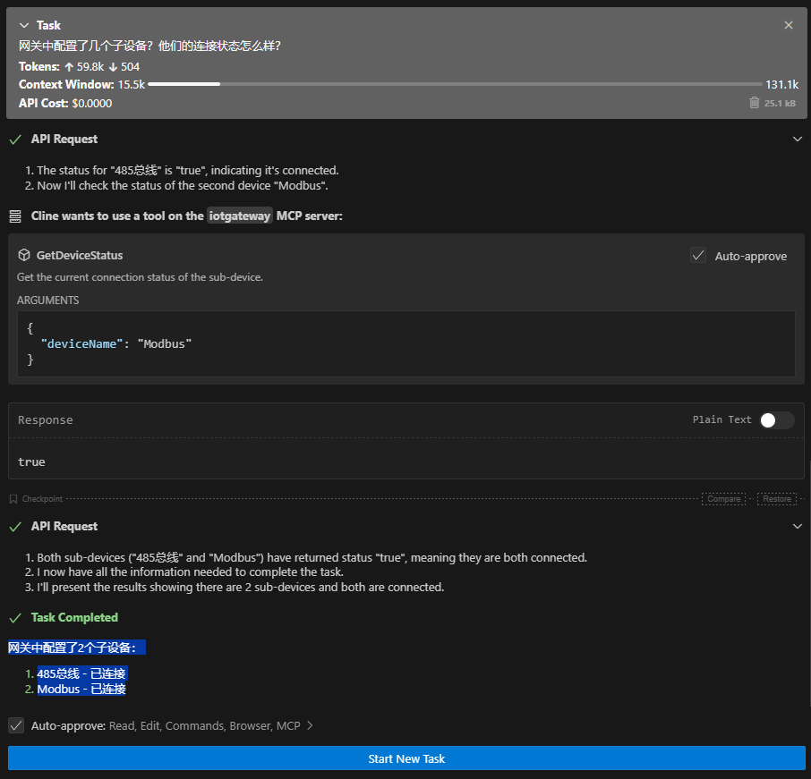 cline_mcp_settings.json添加中添加IoTGateway MCP Server