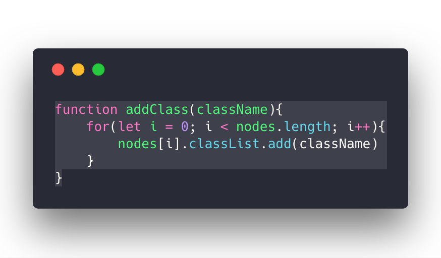 addClass()传进一个数组,获取数组的每个value,然后遍历nodes,为nodes[i]添加class ---value