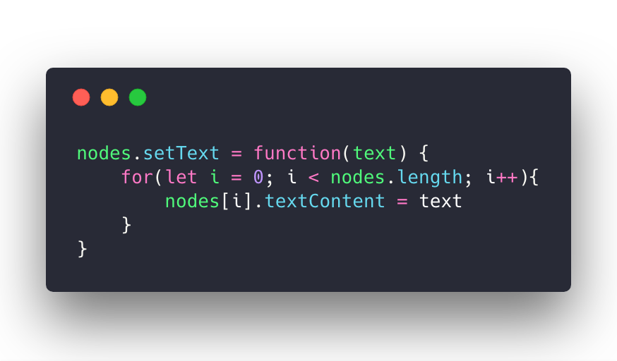 $div.setText('hi') // 可将所有 div 的 textContent 变为 hi