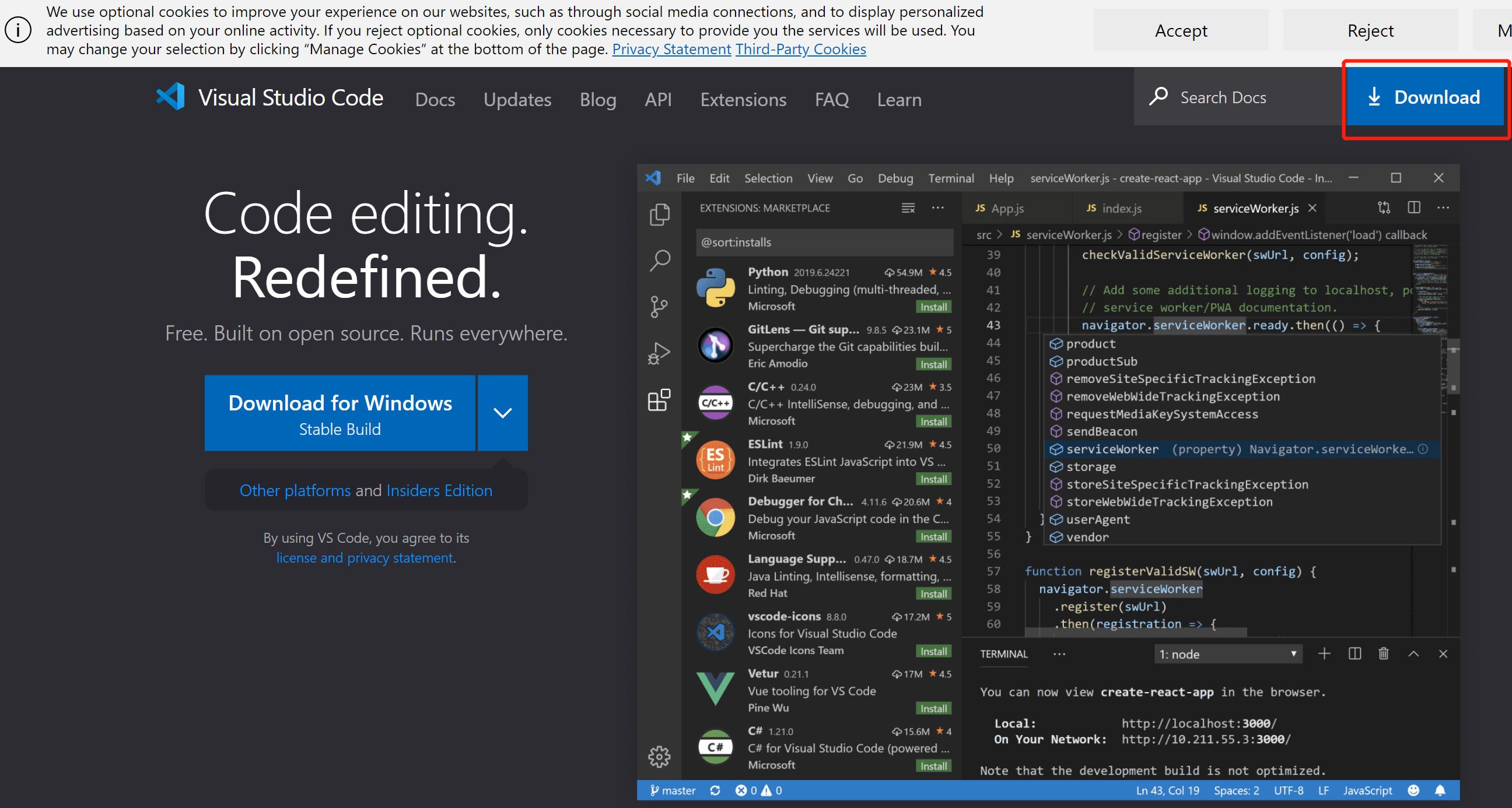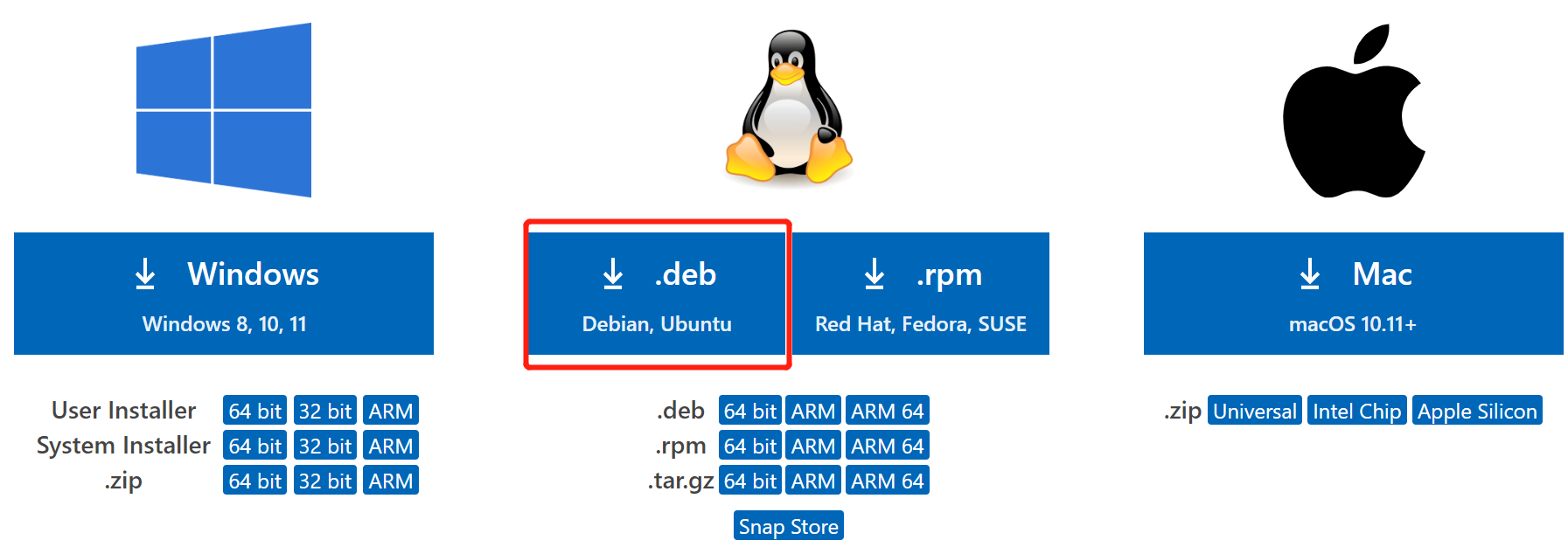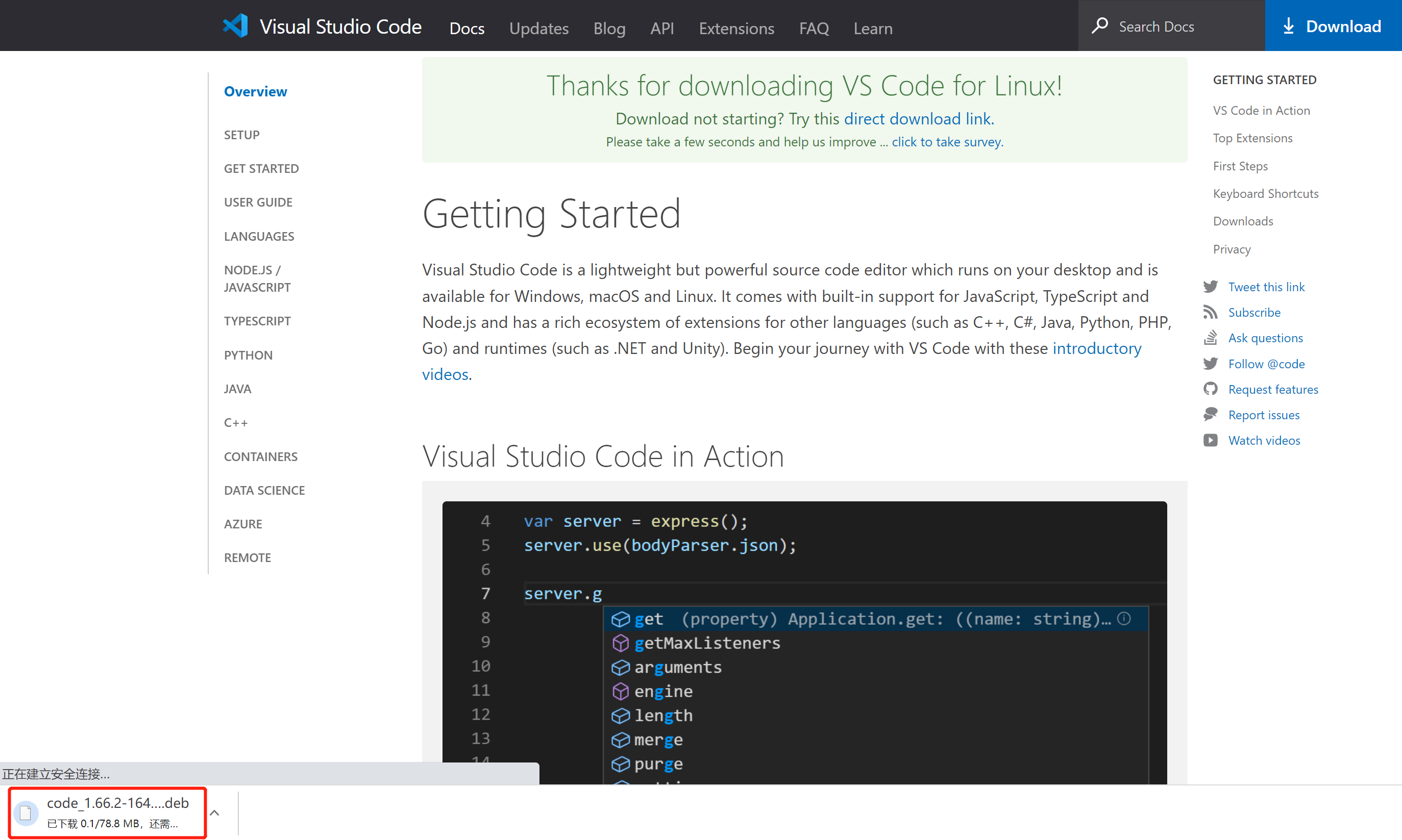 第一步:打开官网(https://code.visualstudio.com/)获取下载deb安装包的相关链接
