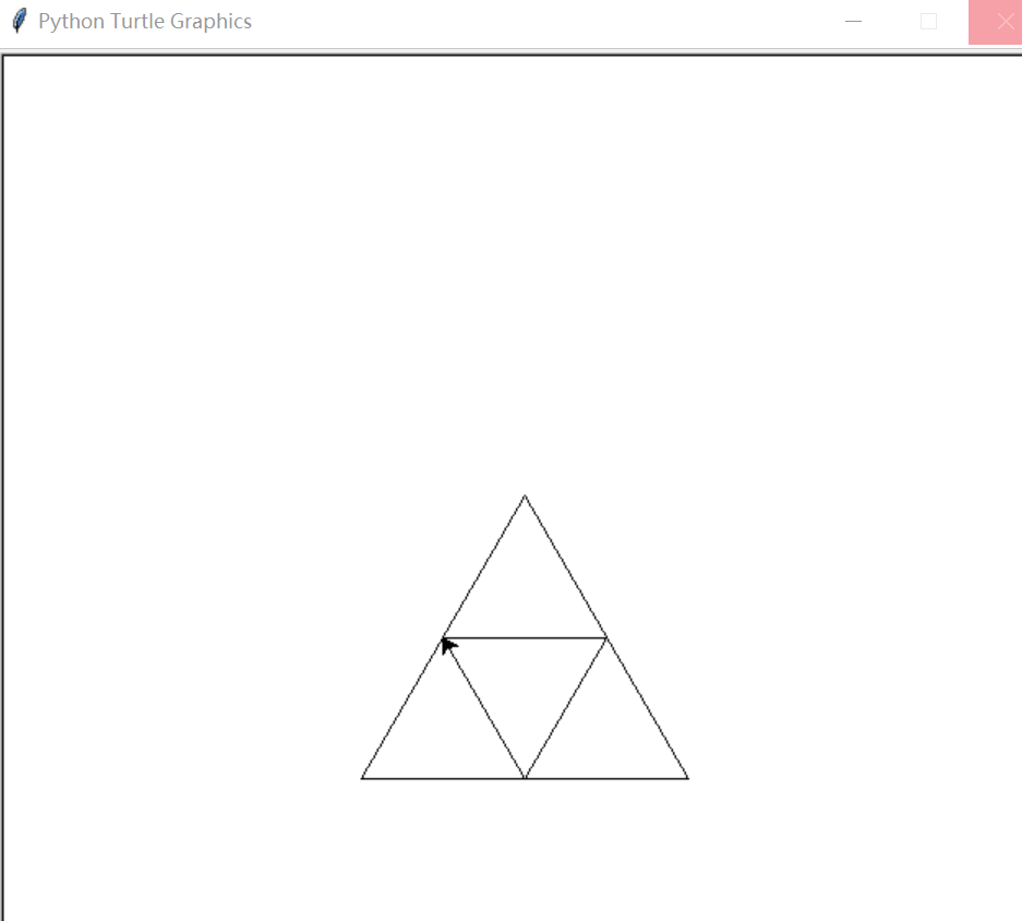 import turtle >>> turtle.right(60) >>> turtle.forward(200) >>> turtle.right(120) >>> turtle.forward(200) >>> turtle.right(120) >>> turtle.forward(200) >>> turtle.penup() >>> turtle.forward(-100) >>> turtle.pendown() >>> turtle.right(60) >>> turtle.forward(100) >>> turtle.right(120) >>> turtle.forward(100) >>> turtle.right(120) >>> turtle.forward(100) >>> turtle.done()