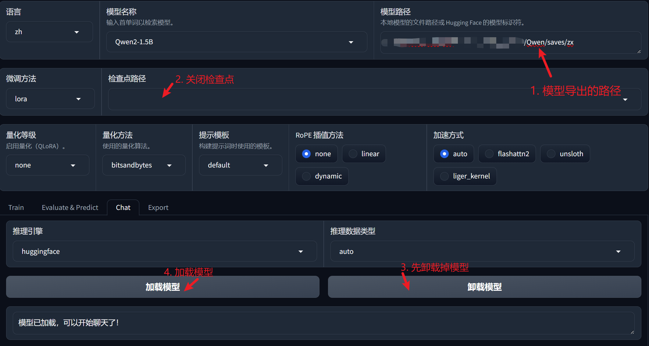 CUDA_VISIBLE_DEVICES=0 llamafactory-cli webchat --model_name_or_path /home/zx/zxmodel/Qwen/Qwen2___5-1___5B-Instruct --template qwen