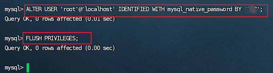 ALTER USER 'root'@'localhost' IDENTIFIED WITH mysql_native_password BY '新密码'; FLUSH PRIVILEGES; #将'新密码'改为自己想要设置的新密码