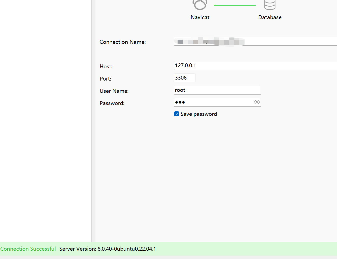 10. host为本地127.0.0.1,因为管道代理的本地ip为127.0.0.1而服务器端在Step4的第2步中也设置的是任意ip中连接,端口为3306,password为服务器上配置的密码
