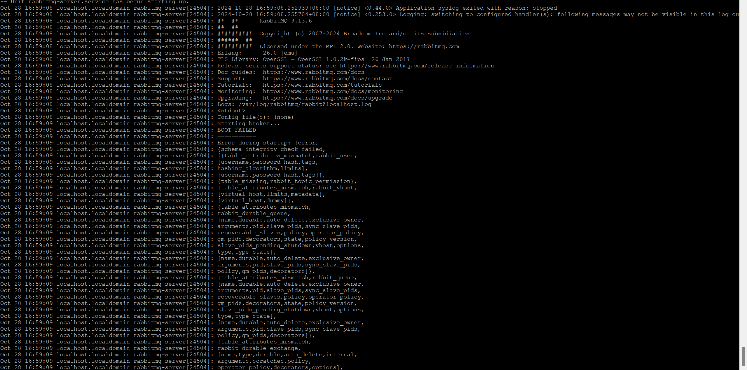 rabbitmq 3.13.6 启动失败解决办法
