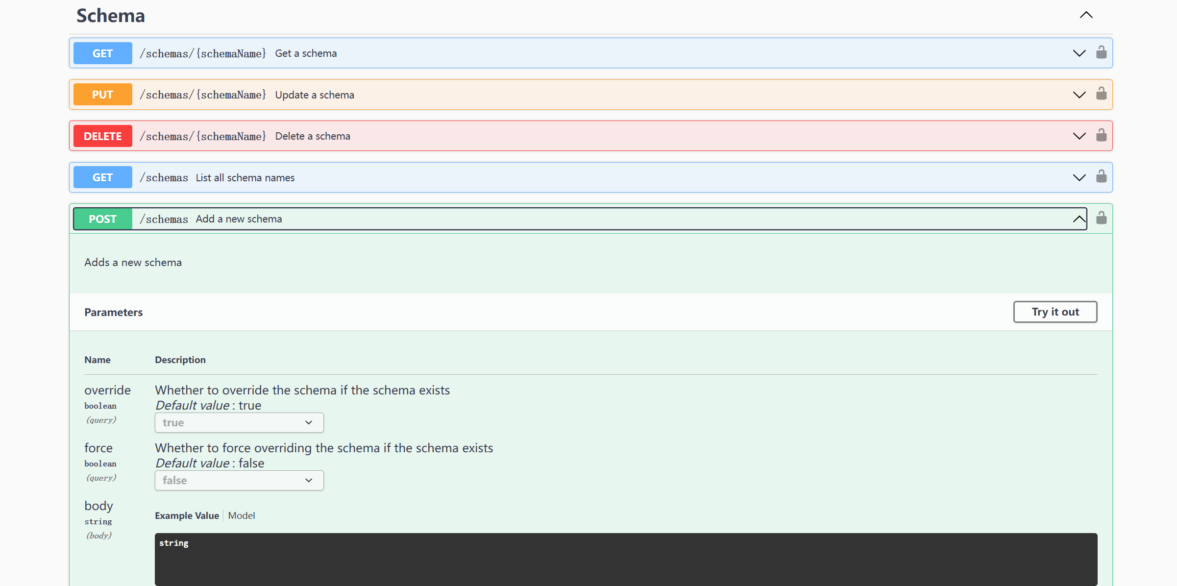 和schema中的post /schemas接口