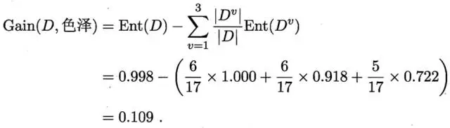 那么我们可以知道属性色泽的信息增益是: