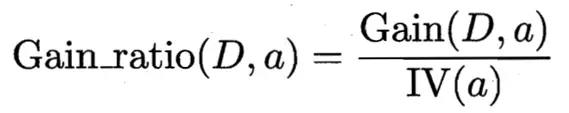 由上图我们可以看出,信息增益率=信息增益/IV(a),说明信息增益率是信息增益除了一个属性a的固有值得来的。