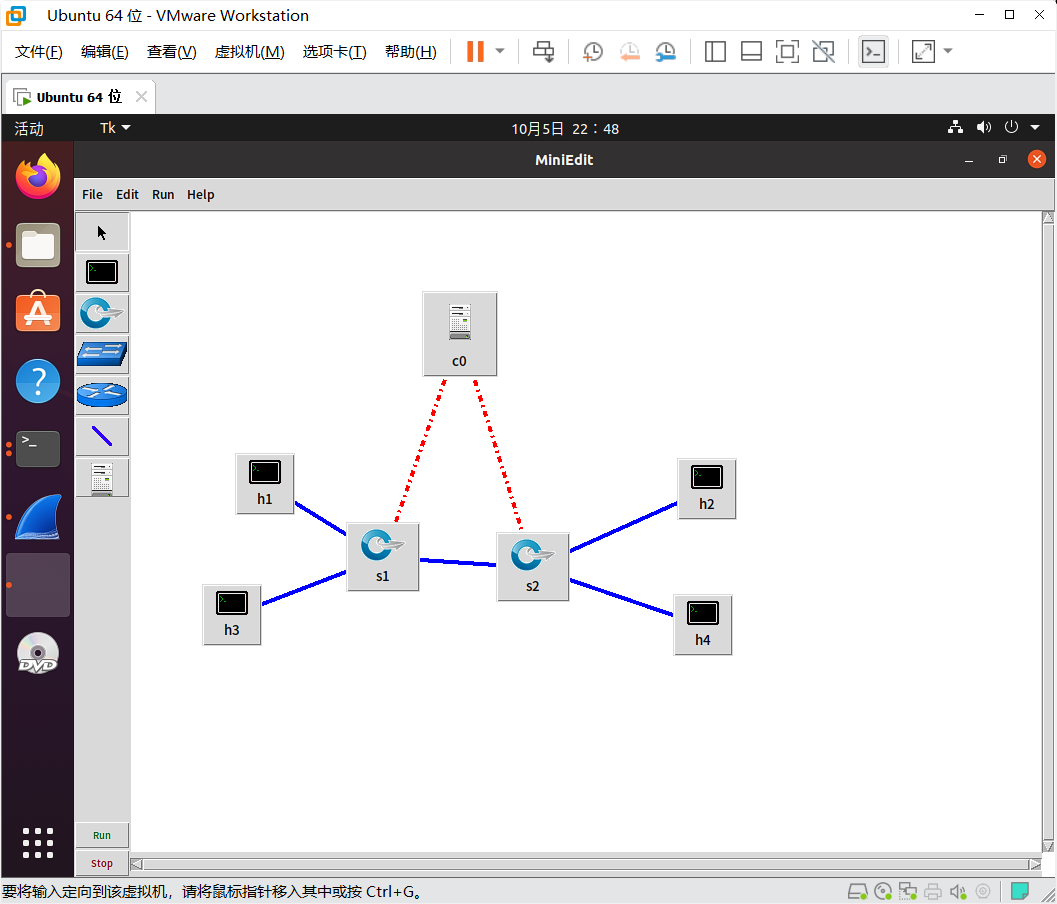 搭建下图所示拓扑,完成相关 IP 配置,并实现主机与主机之间的 IP 通信。用抓包软件获取控制器与交换机之间的通信数据。